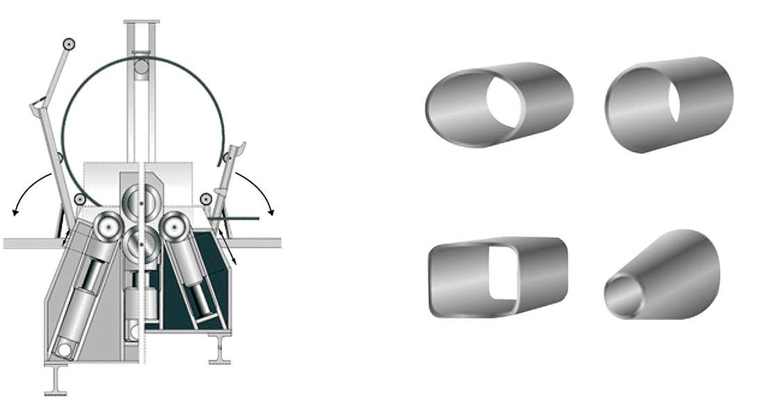 W12 系列具有板材端部的預彎功能,能將金屬板材一次上料,不需調頭即可完成板端預彎和工件的卷制成形;該機上工作輥為主驅動輥,下輥和兩側輥的升降均采用液壓傳動,升降位移由計算機控制,自動調平,屏幕顯示,翻轉軸承體的傾倒和復位采用液壓傳動,上輥的尾部裝有平衡機構。可以方便卸出卷制后的工件及簡體;可隨時移動操作,機器設有安全聯鎖裝置,該機技術水平高,功能全,精度高,操作方便。